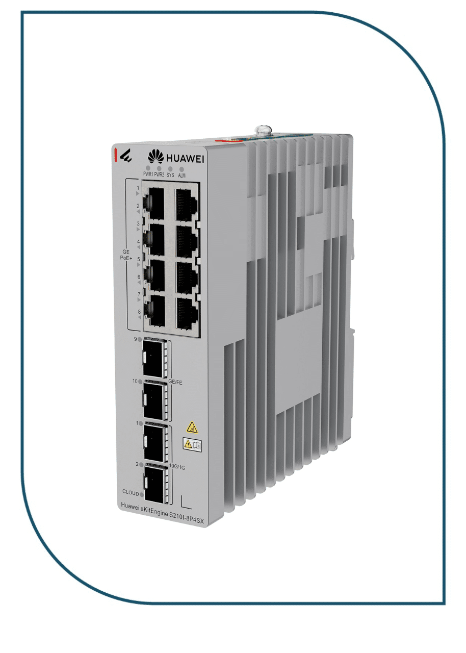 The HUAWEI eKitEngine S210I-8P4SX is an industrial network switch built for reliable connectivity in automation, surveillance, transportation, and smart-infrastructure environments. Designed with ruggedness and operational continuity in mind, this switch can handle extreme temperatures and provides power to connected devices via PoE+ ports.
