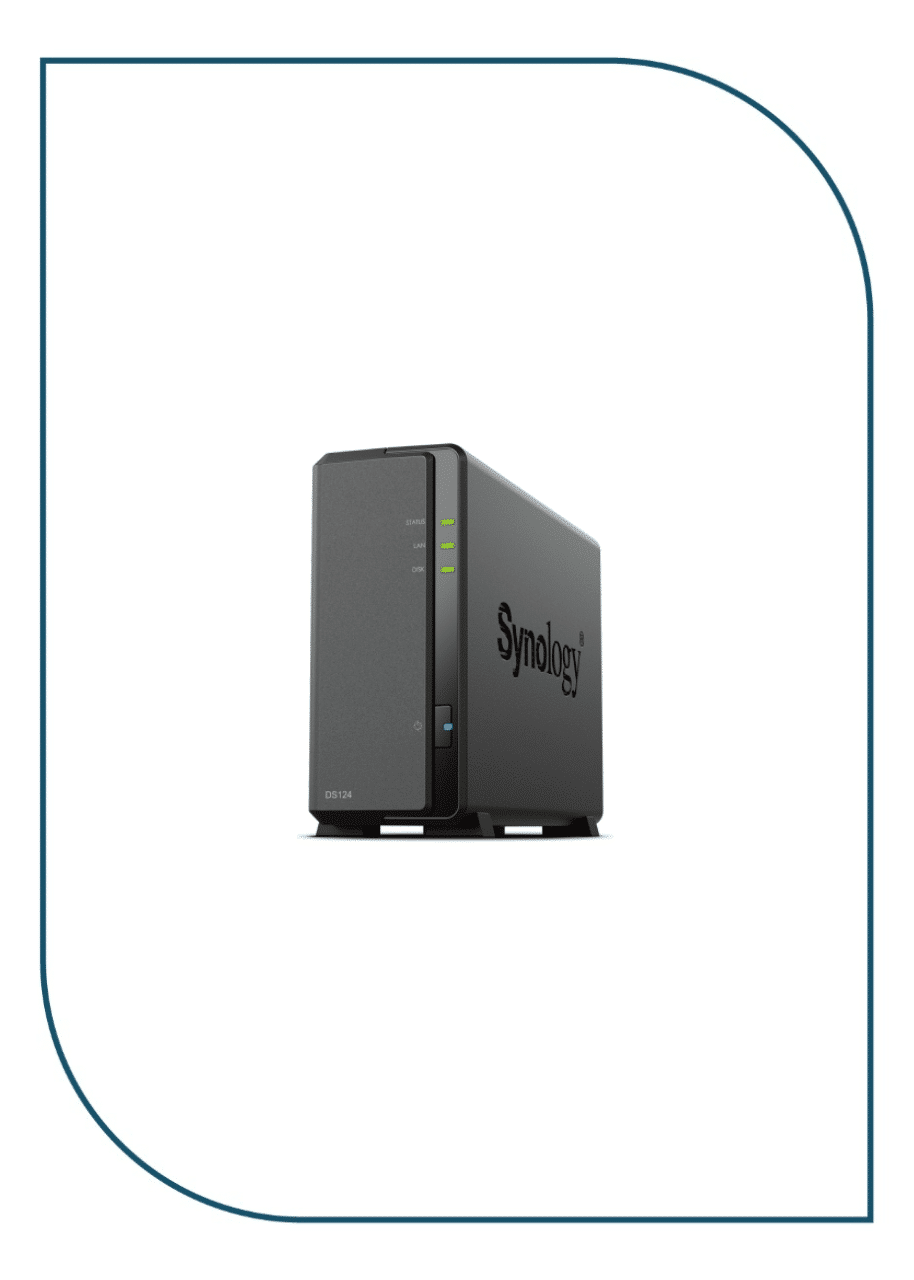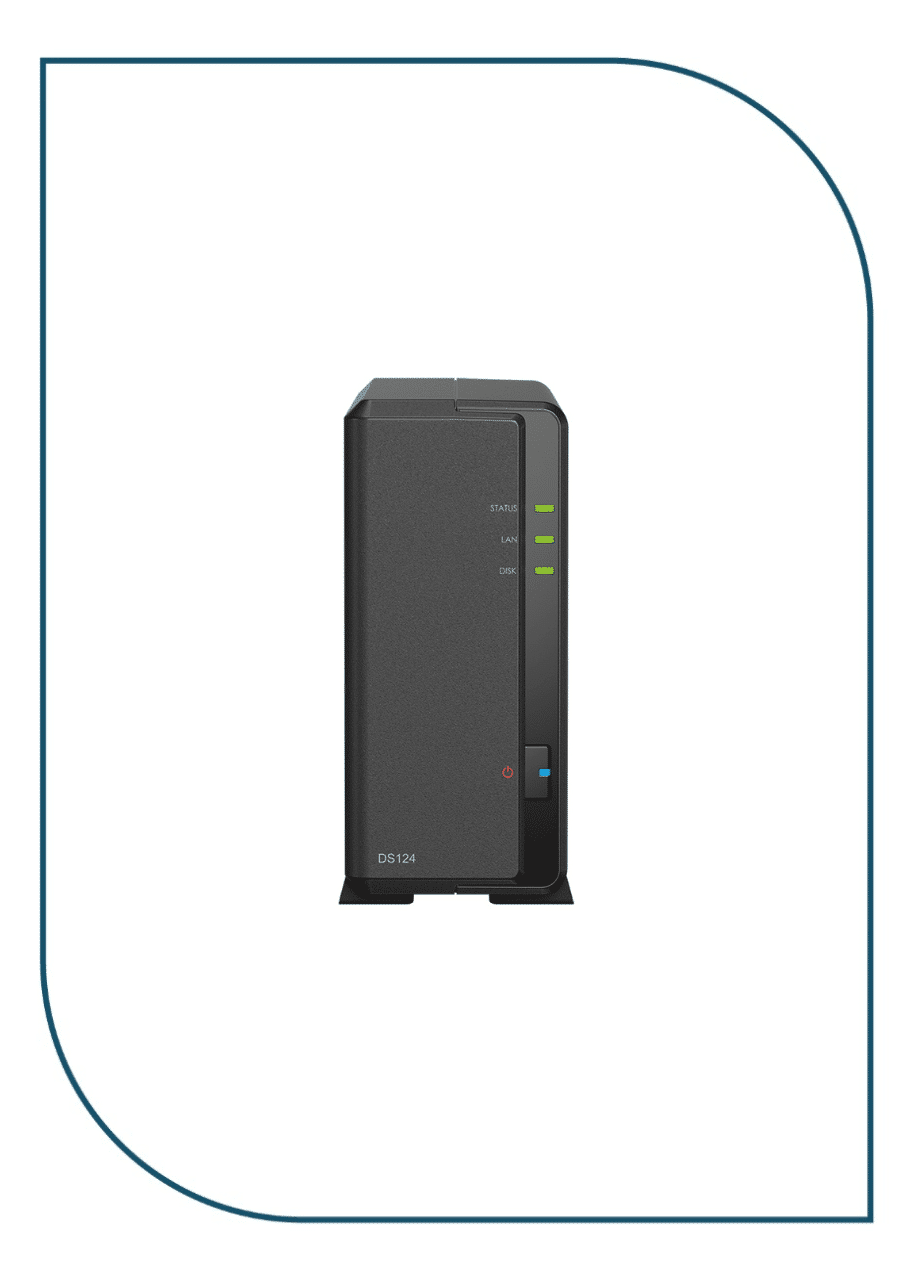 The Synology DS124 is a compact 1‑bay NAS designed for secure data storage, easy file sharing, and hassle‑free backups—perfect for creating your own private cloud.