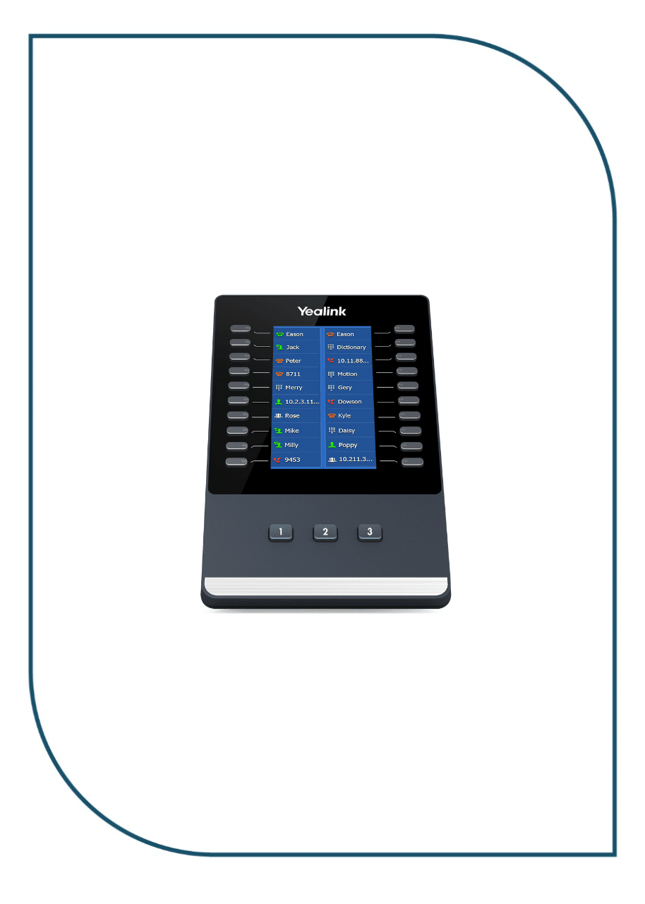 For example, three pages of 20 flexible button shown on the display can be programmed up to 60 various features. The functionality of Yealink T43U/T46U/T48U/T44U/T44W IP phones will also be extended by the EXP43, you can set the provided multifunctional line keys as BLF, speed dial, call forward, transfer, call park, call pickup, etc. The Yealink EXP43 Color Expansion Module is an ideal solution for receptionists, administrative assistants and contact center workers and gives you the ability to monitor contacts and manage a large volume of calls with ease.